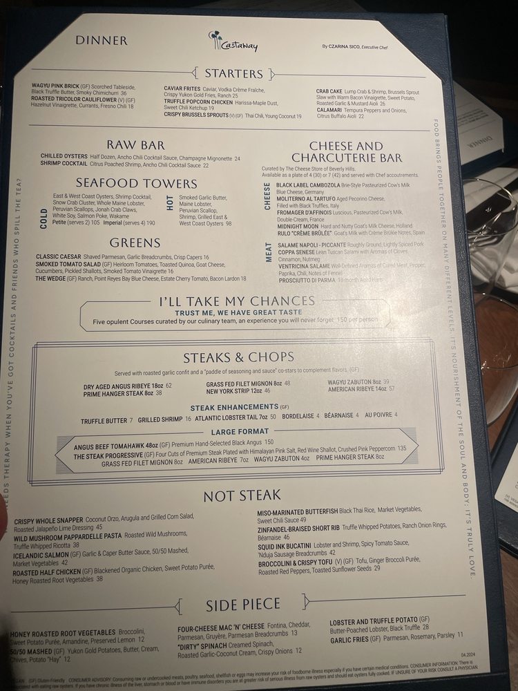 East & West Coast Oysters, Shrimp Cocktail, Snow Crab Cluster, Whole Maine Lobster, Peruvian Scallops, Jonah Crab Claws, White Soy, Salmon Poke, Wakame